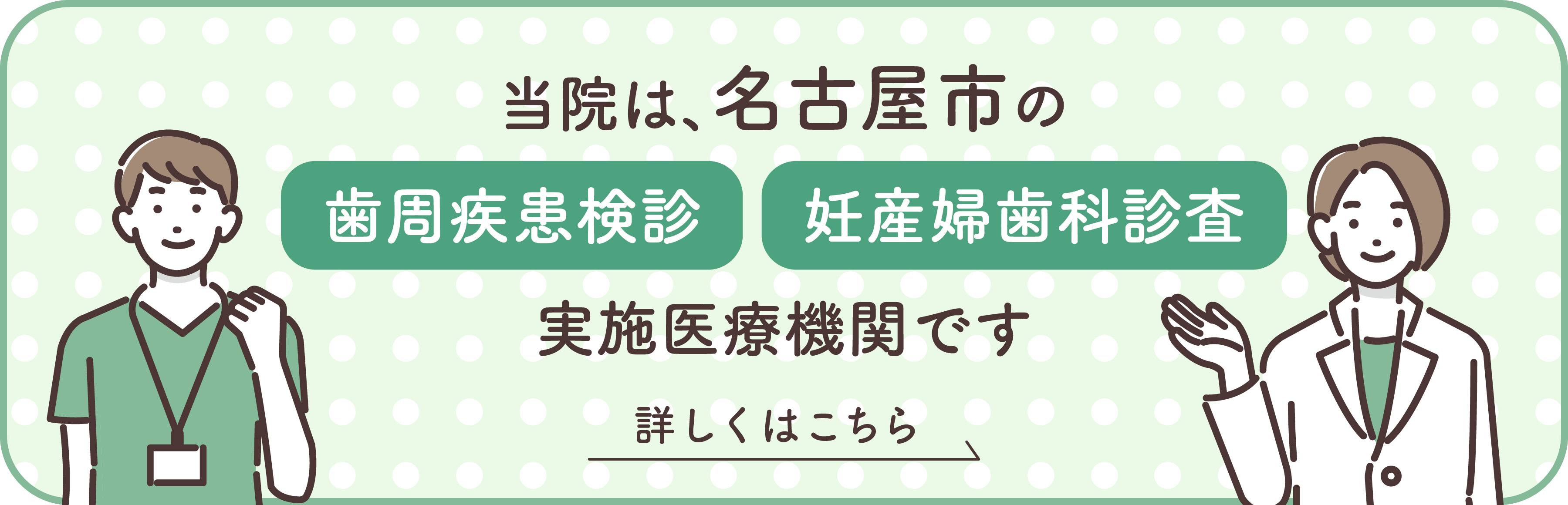 - むし歯/根管治療/歯周病/入れ歯/歯科口腔外科/小児歯科/予防・クリーニング/インプラント/矯正歯科/審美治療/ホワイトニング/定期検診/名古屋市歯科検診